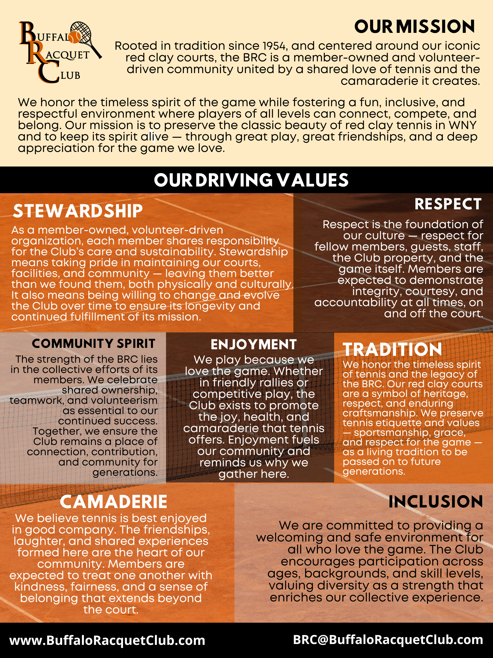 The club is a shared labor of love to be enjoyed by players of all levels, ages, and backgrounds. Whether you are looking to join a community or just play tennis on beautiful red clay, we welcome you.